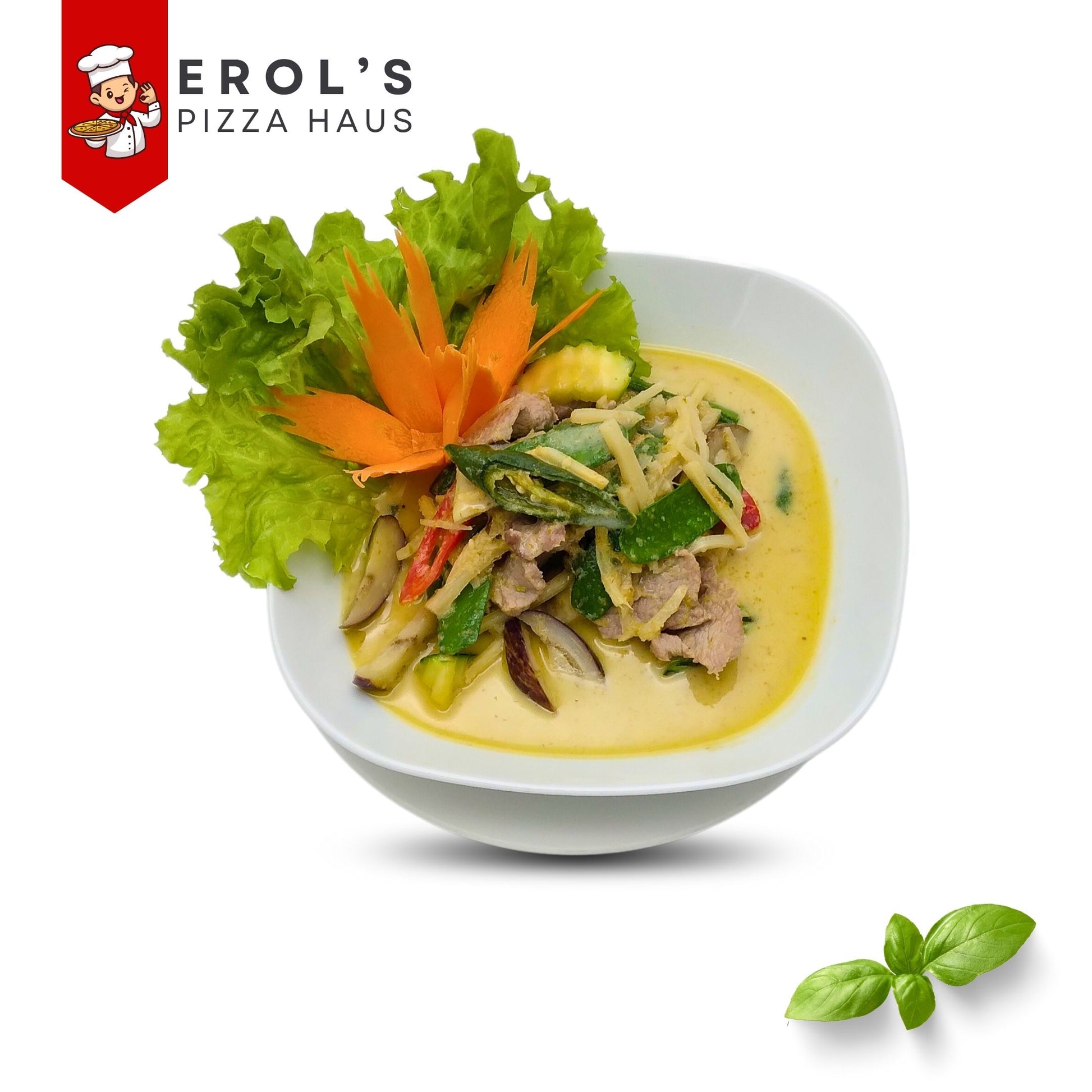 Mit Bambussprossen, Thai-Basilikum, Thai-Auberginen, Thai-Bohnen, Erbsen, und Kokosmilch - Nach Ihre Wahl mit* *je nach Auswahl