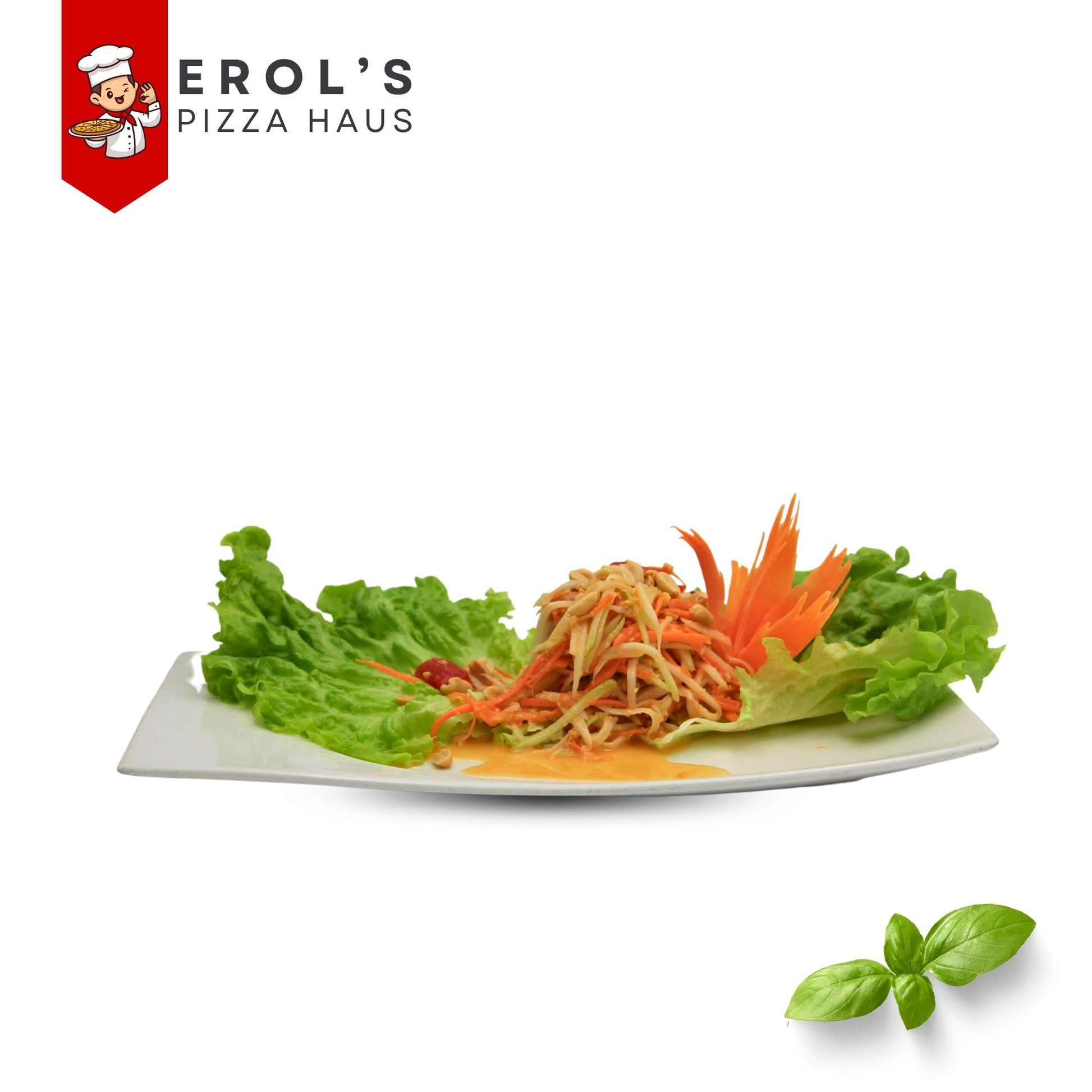 Salat mit frischer Papaya, Tomaten, Karotten, Limonen, Thai-Bohnen, Erdnüssen und Chili - Nach Ihre Wahl mit*
