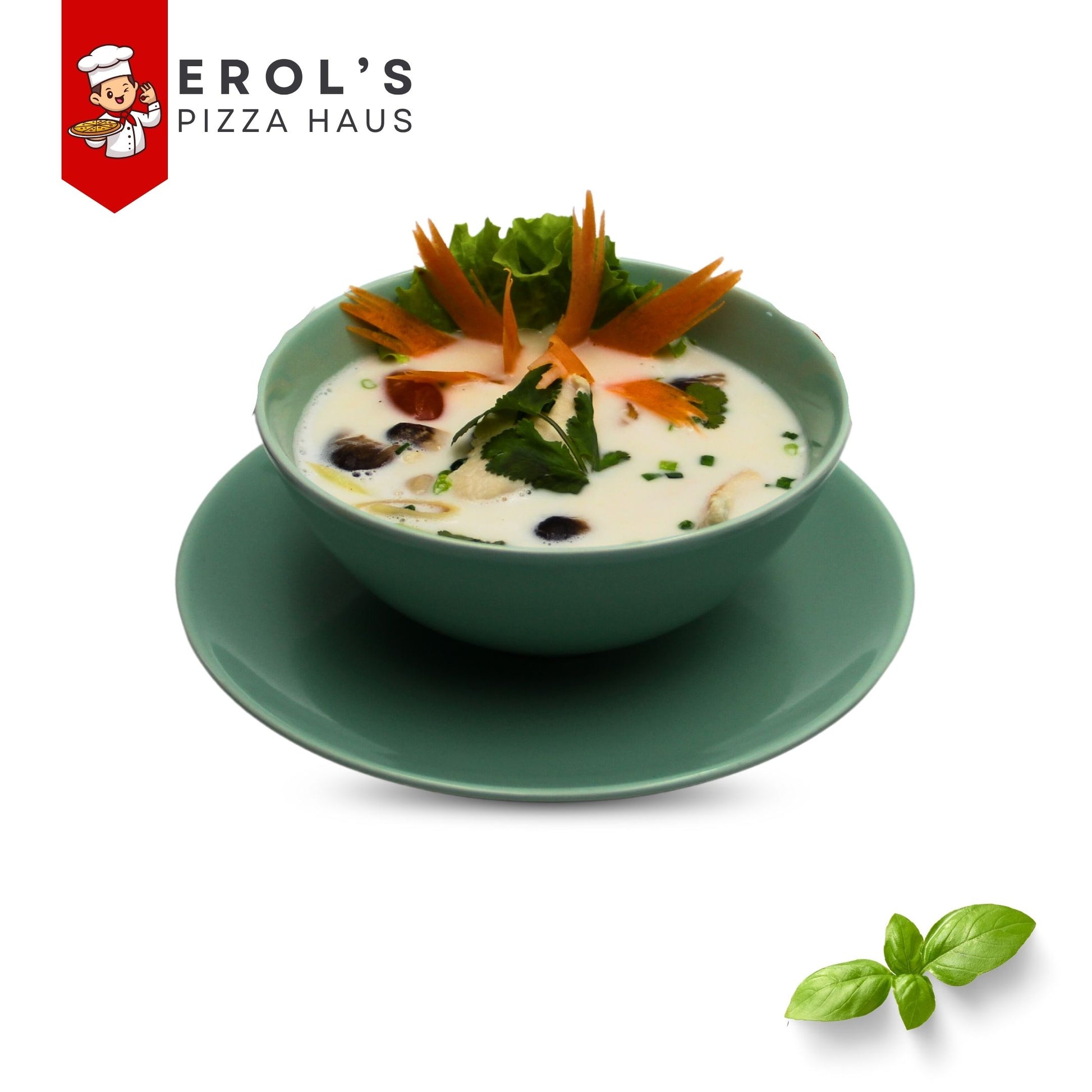 Leichte Suppe mit Kokosmilch, Zitronengras, Blättern Schnittlauch, Pilzen, Baby Mais, Koriander und Galanga - Nach Ihre Wahl mit: *je nach Auswahl