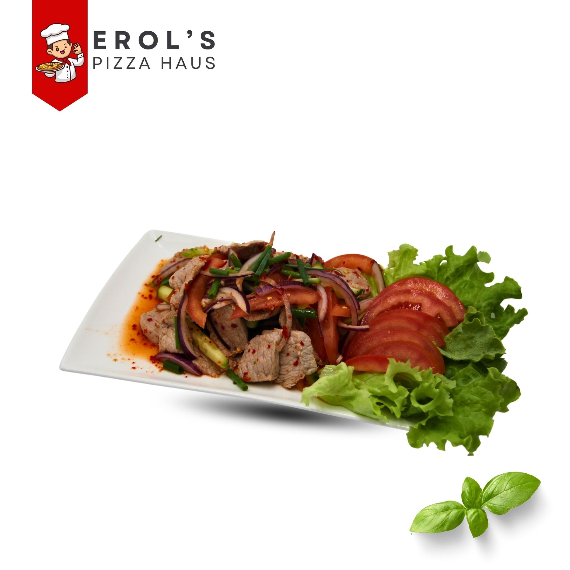 Rindfleischsalat mit frischen Kräutern, zwiebeln, Gurken, Sellerie, Tomaten, Limonen und Frühlingszwiebeln - Nach Ihre Wahl mit*